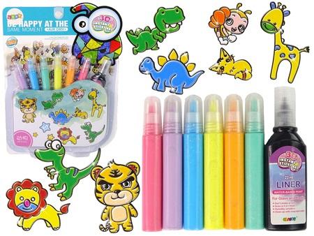 Zestaw Kreatywny Witraże Okno Zastygająca Farba Zwierzęta Malowanie zastygającymi farbkami to idealna forma spędzania wolnego czasu pozwalająca wyrazić własnego siebie. Pozwoli obudzić w sobie artystę. Jest to zabawa na wiele godzin, która doskonale wpływa na kreatywność oraz wyobraźnie. Stworzysz piękne witraże w kształcie zwierząt, które ozdobią Twój pokój. Jak rozpocząć zabawę? 1.Wybierz ulubiony wzór na dołączonej planszy 2. Zaznacz krawędzie za pomocą czarnego linera 3. Odczekaj godzinę 4. Wypełnij środek kolorem 5. Odczekaj 2-4 godzin 6. Zdejmij swoje arcydzieło z arkusza Gotów! Teraz możesz przykleić gotową grafikę do okularów, okien, kubków i luster. To doskonały prezent na urodziny, czy inną okazję. Zestaw jest certyfikowany i bezpieczny dla najmłodszych dzieci. Gdy nie spodoba Ci się Twoja praca, wystarczy zdrapać farbę z powierzchni, odchodzi bez problemu i pomalować na nowo. Pisaki żelowe nie brudzą, bez problemu schodzą z rąk, wystarczy umyć je mydłem. Elementy zestawu: - zestaw 6 kolorowych pisaków do malowania żelem - 1 czarny liner - szablon ze zwierzętami Wymiary szablonu: 28 cm x 21 cm Wymiary pudełka: 28 cm x 22 cm x 4 cm Zabawka przeznaczona dla dzieci powyżej 3 roku życia. Ze względu na zawarte w niej małe elementy zalecana zabawa pod opieką dorosłych.