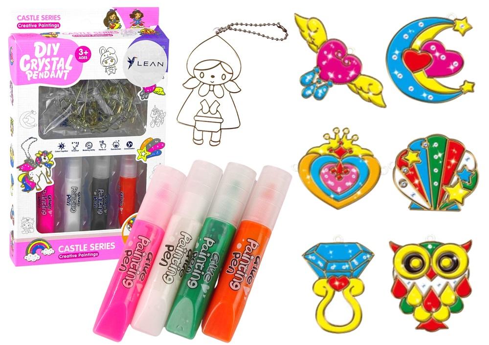 Witraże Zawieszki Do Malowania Zastygająca Farba 6 szt. Malowanie zastygającymi farbkami to idealna forma spędzania wolnego czasu pozwalająca wyrazić własnego siebie. Pozwoli obudzić w sobie artystę. Jest to zabawa na wiele godzin, która doskonale wpływa na kreatywność oraz wyobraźnie. Każdy projekt zależy od Ciebie, cały dobór kolorów. Stworzysz przepiękne wisiorki, zawieszki na okna, breloczki do plecaka. Zawieszki dołączone do zestawu możesz wykorzystać jako wisiorek, breloczek do kluczy, zawieszka do okna bądź plecaka i wspaniała bransoletka. Jak rozpocząć zabawę? Wybierz swój ulubiony kolor, pomaluj, pozostaw do wyschnięcia. Gdy nie spodoba Ci się Twoja praca, wystarczy zdrapać farbę z powierzchni, odchodzi bez problemu i pomalować na nowo. Pisaki żelowe nie brudzą, bez problemu schodzą z rąk, wystarczy umyć je mydłem. To doskonały prezent na urodziny, czy inną okazję. Zestaw jest certyfikowany i bezpieczny dla najmłodszych dzieci. Elementy zestawu: - zestaw czterech kolorowych pisaków do malowania żelem - 6 zawieszek przezroczystych Wymiary zawieszki: 6 cm x 6 cm x 1 cm Wymiary pudełka: 22 cm x 14 cm x 3 cm Zabawka przeznaczona dla dzieci powyżej 3 roku życia. Ze względu na zawarte w niej małe elementy zalecana zabawa pod opieką dorosłych.
