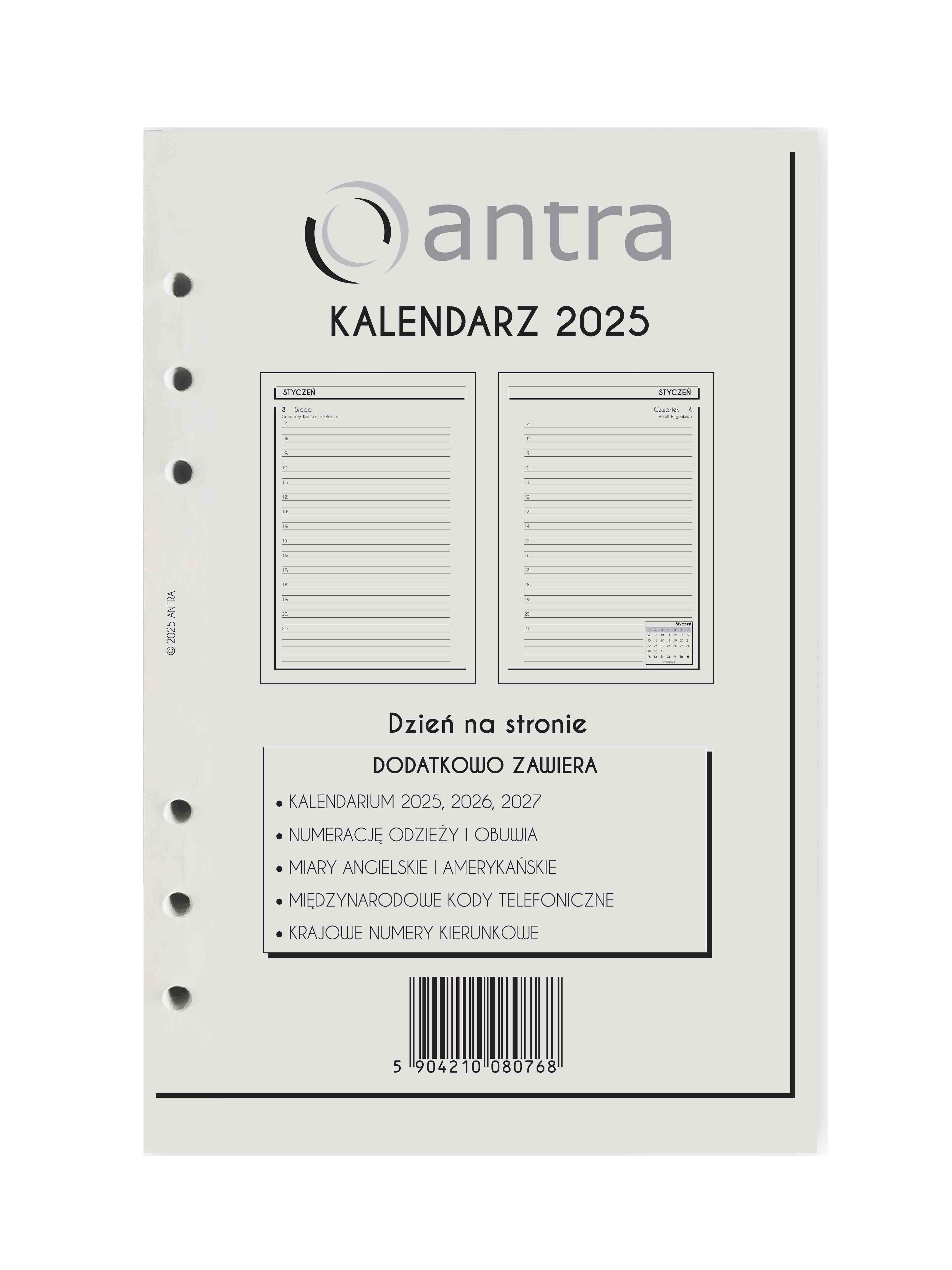 Wkład kalendarzowy 2025 A5 DNS - dzień na stronie Wymiary: 210x144 mm Kolor: biały