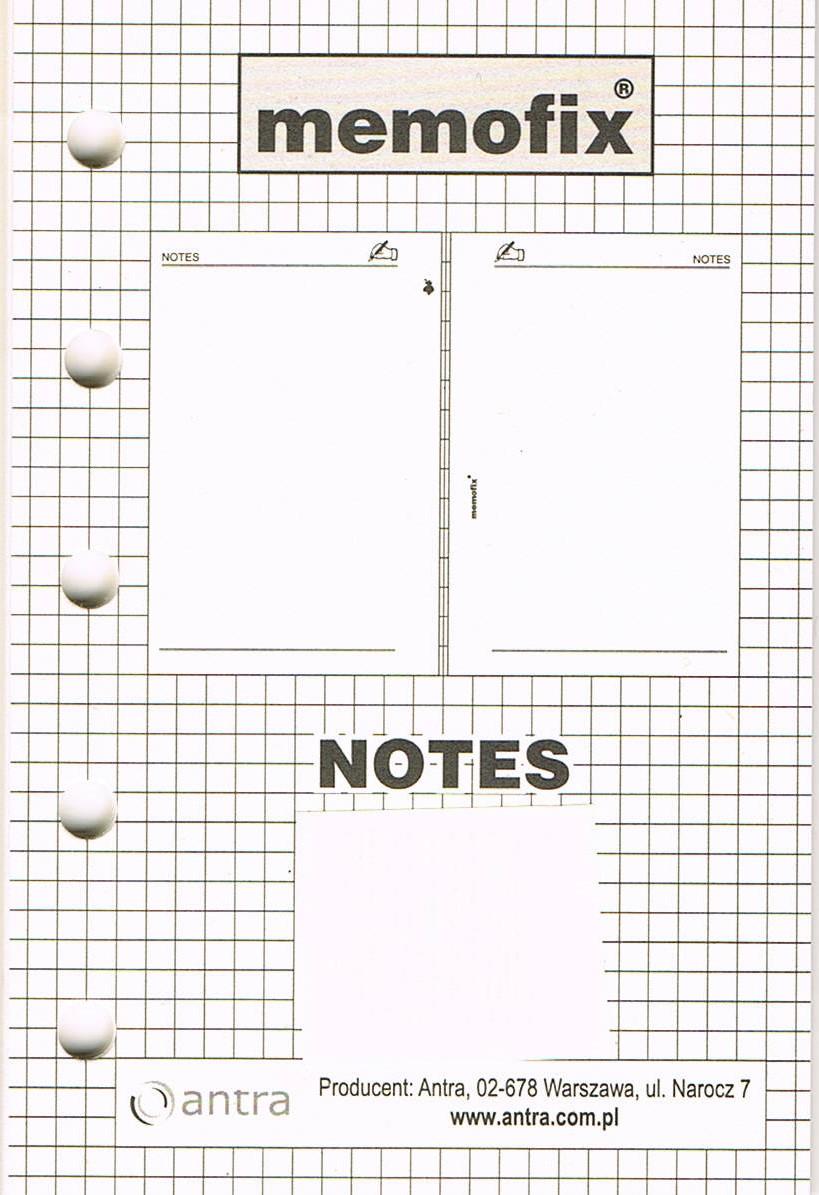 wkład do organizerów M (mini) A7 wymiary: 105x68 mm, kolor kartek: ecru, ilość kartek: 20 szt. ilość dziurek: 5 szt.