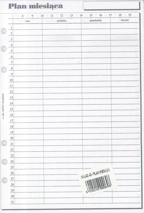Opakowanie Wkład do organizera A5 Plan miesiąca ANTRA