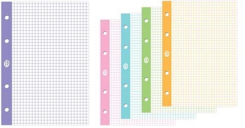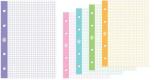 Wkład do segregatora w formacie A4. W opakowaniu znajduje się 50 kartek. Zadruk: kolorowa kratka. 4 otwory do segregatora.
