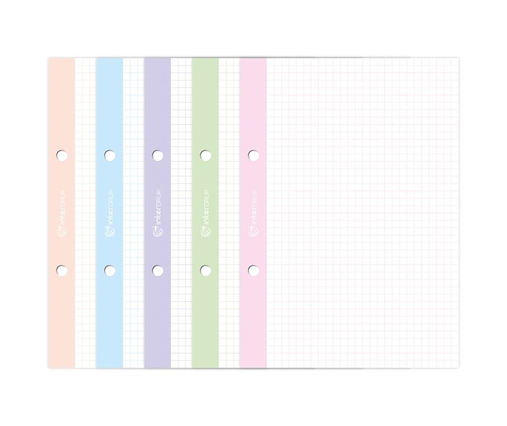 Wkład do segrgatora A5 kratka, 50 kartek z kolorowymi marginesami. 5 sztuk w opakowaniu zbiorczym.