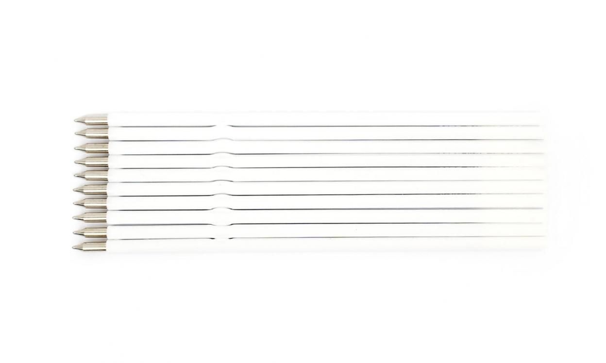 Wkład do większości plastikowych długopisów, standardowa końcówka, niebieski kolor tuszu, grubość linii 0,5 mm, długość wkładu 10,5 cm, w opakowaniu 10 szt.