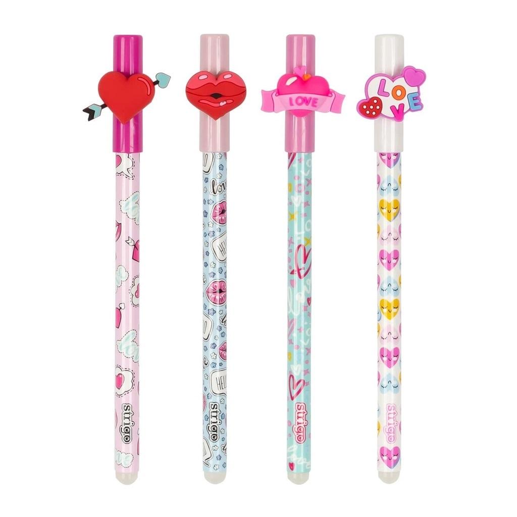 Wymazywalny długopis STRIGO ze skuwką z serii PasteLove. Średnica końcówki piszącej 0,5 mm. W display'u 36 sztuk po 9 sztuk ze wzoru.