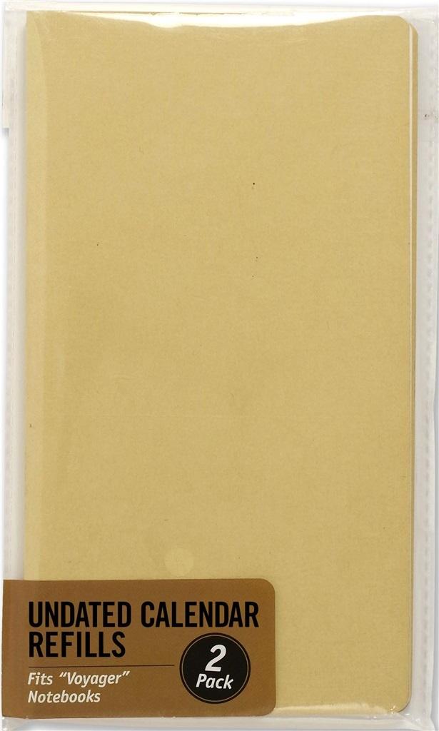 Dwa wymienne wkłady kalendarzowe do notatnika Voyager. Kartki zadrukowane są w kalendarz bez dat, które należy samemu uzupełnić. Produkt idealny do kreatywnego planowania i śledzenia harmonogramu. Każdy zawiera po 60 stron. Format 17,78x10,16cm, gramatura 80gsm.