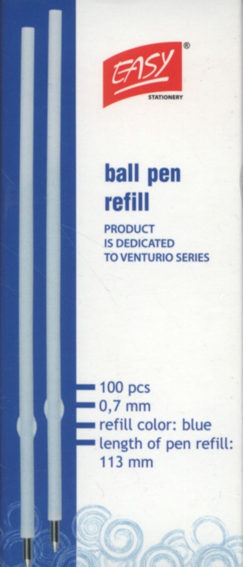 Wkłady dedykowane do długopisów serii Venturio: - grubość 0.7 mm - kolor niebieski - długość wkładu 113 mm 100 sztuk w pudełku
