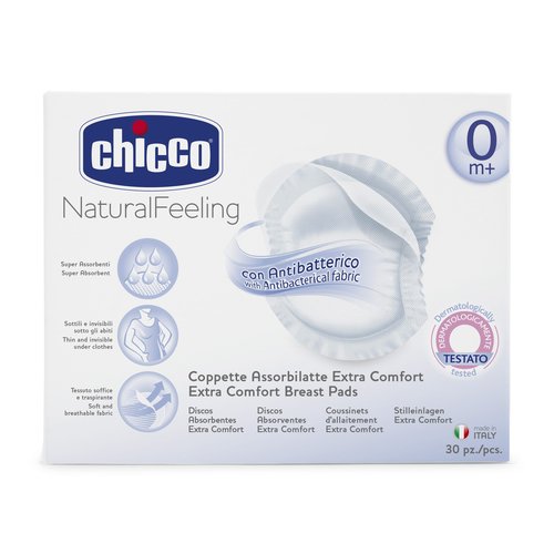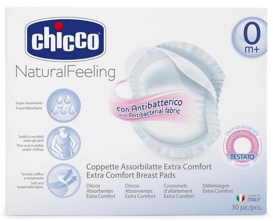 Podczas karmienia piersią, a zwłaszcza w jego najbardziej delikatnej wstępnej fazie, wymagana jest szczególna ochrona i higiena, gdyż podrażniona czy popękana skóra na biuście mogą utrudniać karmienie lub sprawiać ból. Antybakteryjne wkładki zapewniają maksymalne bezpieczeństwo podczas całego okresu karmienia piersią. Wkładki laktacyjne Chicco to wkładki oddychające, wygodne i przyjazne dla skóry, pewne ale niewidoczne pod ubraniem. Anatomiczny kształt i specjalne plastry mocujące sprawiają, że znakomicie przylegają do piersi i nie przesuwają się. Specjalna powłoka antybakteryjna wkładek zapobiega rozprzestrzenianiu się bakterii wewnątrz miseczki. Antybakteryjna molekuła lecznicza nie jest przenoszona na skórę piersi i nie wchodzi w kontakt z buzią dziecka. Super chłonne mikro perełki doskonale absorbują nadmiar sączącego się mleka i zapobiegają zabrudzeniom odzieży. Dla większej higieny wkładki pakowane są w osobne torebki. Testy kliniczne przeprowadzone przez Klinikę Mangiagalli w Mediolanie wykazały, że używanie antybakteryjnych wkładek laktacyjnych pozwala uniknąć podrażnień, popękania skóry na biuście i stanom zapalnym sutków.