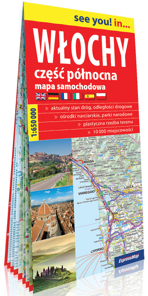 Z mapą samochodową północnej części Włoch podróż od Turynu po Rzym będzie czystą przyjemnością! • aktualny stan dróg, odcinki w budowie • autostrady wraz z nazwami węzłów • szczegółowa kategoryzacja i numeracja dróg • odległości drogowe w kilometrach • promy samochodowe • ośrodki narciarskie wraz z największymi wyciągami • opisy głównych pasm górskich oraz najważniejszych szczytów i przełęczy • plastyczna rzeźba terenu, lasy, parki narodowe • skorowidz miejscowości