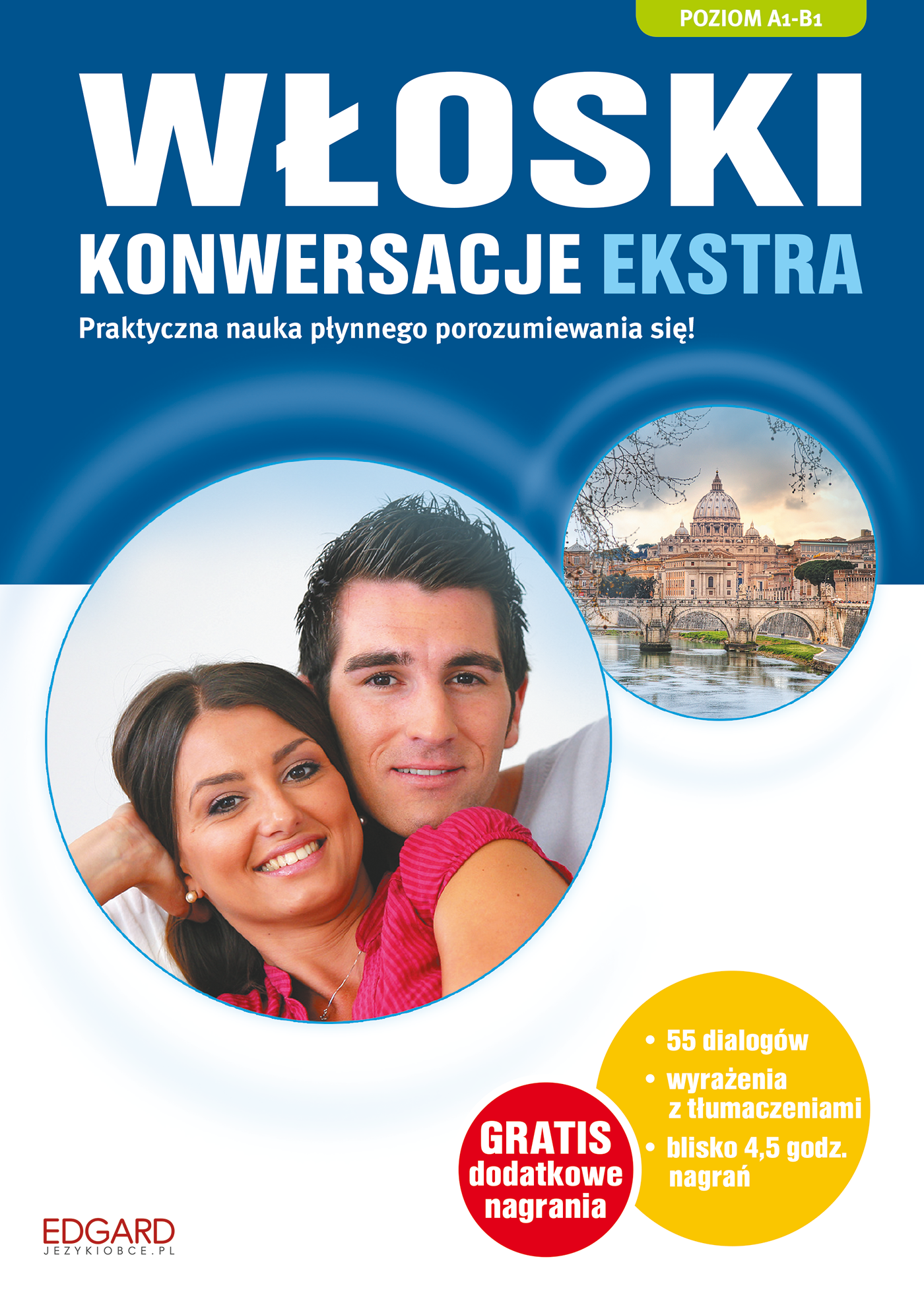 Włoski Konwersacje EKSTRA WYDANIE: - blisko 4,5 godz. wysokiej jakości nagrań - tylko rodowici Włosi, - ponad 55 ciekawych i praktycznych dialogów, - nauka prowadzenia swobodnych rozmów w języku włoskim, - słówka i gotowe praktyczne zwroty na każdą okazję, - w książce zapis nagrań wraz z tłumaczeniami, - ćwiczenia utrwalające z kluczem odpowiedzi, - dodatkowe nagrania z niezbędnymi zwrotami. Kurs przeznaczony jest dla osób początkujących oraz średnio zaawansowanych, które chcą zdobyć lub udoskonalić umiejętność prowadzenia swobodnych rozmów w języku włoskim. Szczególnie polecany jest tym, którzy wybierają się w podróż do Włoch. Włoski Konwersacje EKSTRA WYDANIE to ponad 55 dialogów, nauka przydatnych zdań, słów i zwrotów oraz zestawy ciekawych ćwiczeń. Tematy rozmów związane są z praktycznymi, życiowymi sytuacjami, takimi jak szukanie pracy, problemy z komunikacją miejską, podróże, wizyta u lekarza, zakupy, a także z życiem rodzinnym i towarzyskim. Książka (136 str.) zawiera dialogi, zdania, słówka oraz zwroty wraz z tłumaczeniami. W każdej z 15 rozbudowanych lekcji znajdują się gotowe wzorce dialogów oraz zestawy słówek na każdą okazję. W podręczniku zamieszczono również kilkadziesiąt różnorodnych ćwiczeń - doskonalących umiejętność swobodnego komunikowania się oraz utrwalających nowo poznany materiał. Na końcu podręcznika znajduje się klucz odpowiedzi. Wysokiej jakości nagrania (blisko 4,5 godz.) pozwalają osłuchać się z językiem, poznać prawidłową wymowę oraz przećwiczyć rozumienie ze słuchu i uczyć się metodą powtarzania. Dialogi oraz zdania wraz z tłumaczeniami zostały udźwiękowione przez profesjonalnych lektorów.