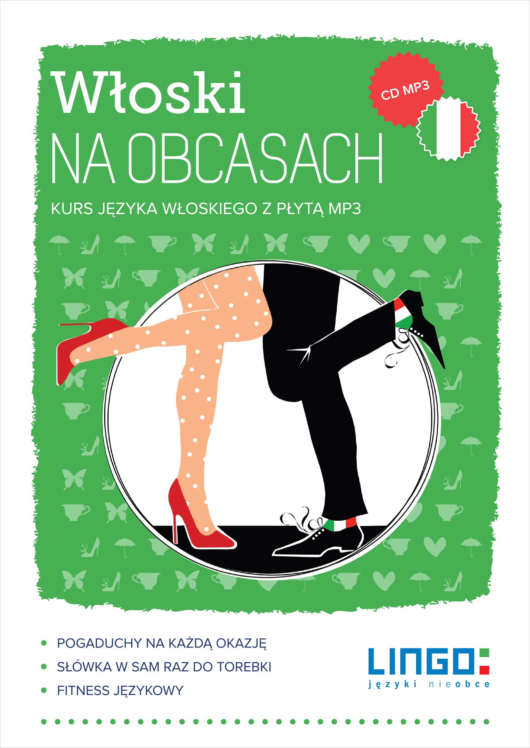 Zapraszamy na włoskie pogaduchy! ""Włoski na obcasach"" to unikalny sposób na opanowanie nowoczesnego języka włoskiego. Polecamy go wszystkim początkującym, wiecznie początkującym, średnio zaawansowanym, i tym, co już nie raz zaczynały. Z najnowszego kursu Lingo skierowanego do dziewczyn i kobiet dowiesz się, jak rozmawiać po włosku o modzie, facetach, zakupach, pracy i innych ważnych sprawach. Po każdej lekcji znajdziesz zestaw przydatnych słówek i zwrotów, które zmieszczą się do małej lub większej torebki. Pokażemy ci gramatykę od kuchni i zaprosimy cię na fitness językowy.