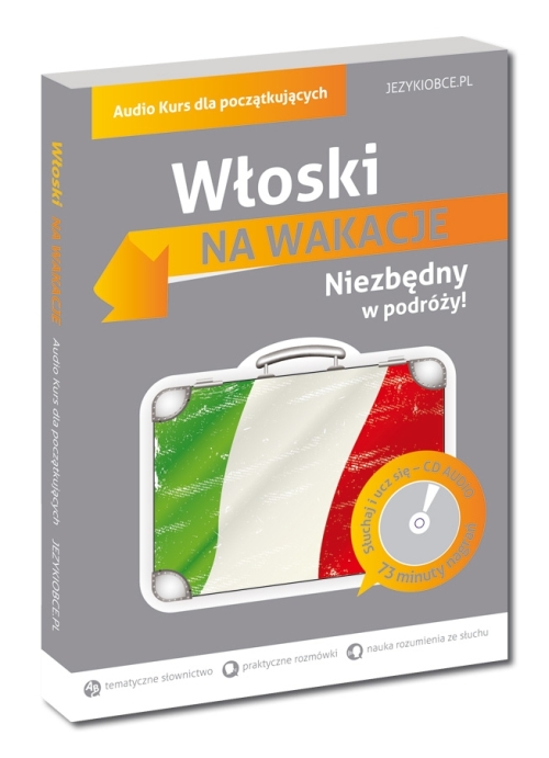 Włoski NA WAKACJE to kurs przygotowany z myślą o osobach, które wyjeżdżają za granicę w celach turystycznych. Zapewnia skuteczną naukę mówienia i rozumienia ze słuchu. Książka doskonali znajomość słownictwa związanego z podróżowaniem, aktywnym wypoczynkiem i zwiedzaniem. 16 lekcji dotyczy typowych sytuacji, takich jak: pytanie o drogę, zamawianie dania w restauracji, kupowanie biletu, rezerwacja noclegu, odprawa bagażowa. Kurs dla początkujących (poziom A1-A2) ma formę praktycznych rozmówek. W każdym z rozdziałów tematycznych znajdują się przydatne słówka i dialogi wraz z tłumaczeniami. Do książki dołączona jest płyta CD Audio z nagraniami profesjonalnych lektorów, które pozwolą zapamiętać gotowe zwroty i wyrażenia. Dzięki Włoski NA WAKACJE Audio Kurs dla początkujących: - poznasz słownictwo związane z podróżami i zwiedzaniem - utrwalisz umiejętność rozumienia ze słuchu - przećwiczysz prawidłową wymowę - bez problemów porozumiesz się z obcokrajowcami!