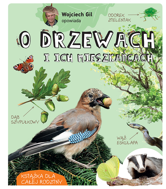 Wojciech Gil – leśnik z wykształcenia i zamiłowania opowiada o drzewach i związanych z nimi zwierzętach i innych „mieszkańcach“. Bogato zilustrowane, pełne wiedzy i miłości do przyrody gawędy dla dzieci, rodziców i dziadków. Zwierzęta zamieszkują wszystkie zakątki lasu, od ściółki, przez korzenie, pnie, gałęzie, po czubki drzew. Również liście i owoce każdego drzewa czy krzewu znajdą swego amatora. Pożywi się nimi mała gąsienica, chrząszcz, mysz leśna lub znacznie od nich większa sarna. Przez każdą dziuplę w pniu dębu przez lata przewija się wielu lokatorów. Raz jest to rodzina pszczół, w następnym roku kuna leśna, a potem puszczyk. Wśród bohaterów tej książki są drzewa i krzewy rosnące u nas „od zawsze”, a także takie, które pochodzą z innych stron świata, ale zagościły już w Polsce na dobre. W poczet mieszkańców drzew Autor zalicza także organizmy, którym dany gatunek rośliny najczęściej udziela schronienia lub pokarmu. Każdy może uzupełnić ten zestaw mieszkańców o samodzielnie zaobserwowane gatunki i wpisać ich nazwy do tabeli w spisie treści. To ekscytująca i bardzo rozwijająca zabawa!