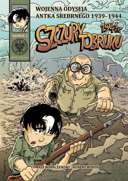 Antek Srebrny dokonał rzeczy niemożliwej. Nie tylko uciekł z obozu w komunistycznej Rosji, ale po wielu tygodniach wyczerpującego marszu dotarł do skrawka wolnej Polski znajdującego się… w Syrii. Tak, to najprawdziwsza prawda – Antek trafił do obozu organizowanej tam Samodzielnej Brygady Strzelców Karpackich. Ostatnie przejścia sprawiły, że zmężniał i wydoroślał ponad swój wiek. Dzięki temu może podać, że jest starszy o dwa lata i przywdziać wreszcie wymarzony polski mundur. Razem z brygadą trafia teraz w samo „oko cyklonu” walk w Afryce Północnej – do twierdzy Tobruk. Czy uda mu się przechytrzyć „Lisa Pustyni”? Co łączy go z agentem niemieckim Totensteinem? Czy Antek zasłuży na miano „szczura Tobruku”? Na wszystkie te pytania znajdziesz odpowiedź w trzecim zeszycie serii „Wojenna odyseja Antka Srebrnego 1939–1944” – Szczury Tobruku 1941 r.