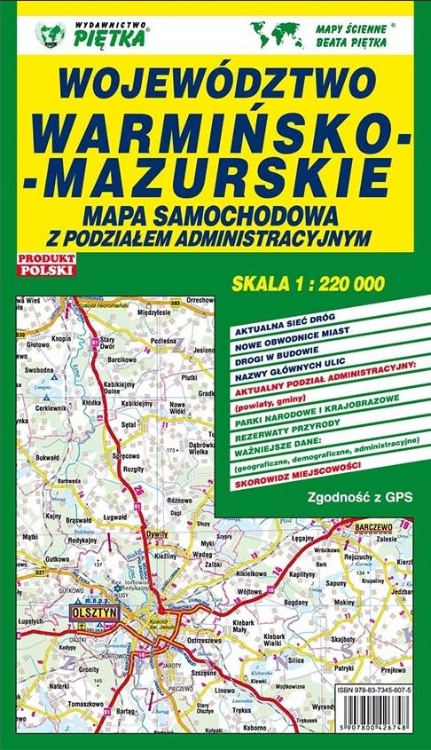 Województwo warmińsko-mazurskie mapa samochodowa 1:220 000