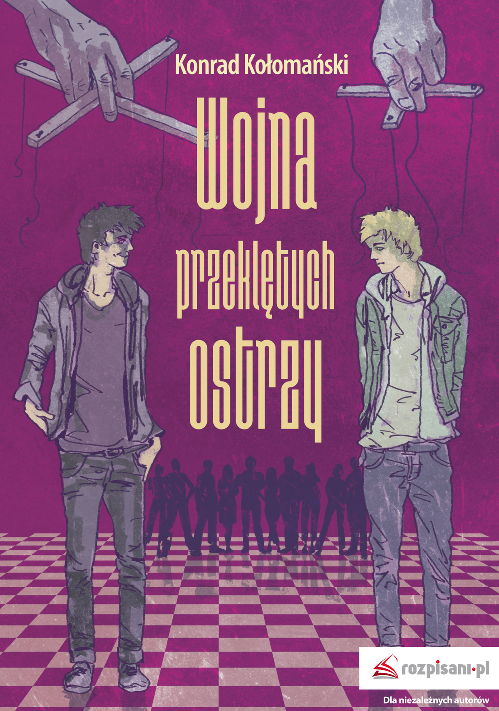 To pierwszy tom serii „Władców wszechświata”… Mam na imię Max. Max Knight, jeśli chodzi o ścisłość. Na pozór jestem zwykłym nastolatkiem. Wieje przeciętną fantastyką? No cóż, nie mnie to oceniać. Od małego cały swój wolny czas poświęcałem treningom, oczywiście nie z własnej woli. Przygotowywano mnie do czegoś, jednak nigdy nie powiedziano mi, do czego właściwie. W wieku osiemnastu lat poznałem powód… "Wojna przeklętych ostrzy" to nieuczciwa, zdradziecka gra o tytuł władcy wszechświata – istoty niemalże boskiej. Obecny władca – Deus Ex Universi – już zawczasu wybrał sobie dwunastkę, która miała brać w niej udział. Wśród wybranych byłem także ja… Ta wojna nie ma jakichś skomplikowanych zasad. Dostajesz przeklęte ostrze i jedyne, co musisz zrobić, to przetrwać – pozostać jako jedyny. Jak tego dokonać? Masz wybór. Albo ukryj się z nadzieją, że nikt cię nie znajdzie, i poczekaj, aż inni się pozabijają, albo stań do walki i zabij pozostałych. Proste? Łatwiej powiedzieć niż zrobić. Każdy ma powód do walki po zwycięstwo i nawet na moment nie zawaha się przed zabiciem swojego przeciwnika. Jesteś w stanie zabić drugiego człowieka? Zniszczyć wszystkie marzenia i cele, dla których walczy? W takim razie… Nie jesteś człowiekiem. Konrad Kołomański – urodzony w drugim milenium naszej ery (2000 r.). Pierwszy raz zainteresował się pisaniem w wieku dwunastu lat, jednak wybujałą wyobraźnię miał od zawsze. W pisaniu najczęściej inspiruje go otoczenie i to właśnie piękne tereny Doliny Wilkowskiej pobudzały u niego i tak już żywą wyobraźnię, a rodzina i przyjaciele nieświadomie podrzucali nowe pomysły. „Wojna przeklętych ostrzy” to jego pierwsza powieść. Był co do niej na tyle pewien, że wraz z ojcem zaryzykował jej wydanie. W czasie premiery Konrad najpewniej już jest w połowie pisania drugiej części i ma nadzieję, że da mu jeszcze więcej satysfakcji. Marzy, by pokazać światu całą zaplanowaną serię. Obecnie uczęszcza do liceum z nadzieją, że lata w nowej szkole przyniosą mu dużo nowych inspiracji i pomysłów. Jest także przekonany, że nawet jeśli jego pierwsza historia nie odniesie sukcesu, nie przestanie tworzyć.