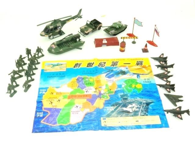 Zestaw do zabawy w wojsko - plansza, pojazdy, figurki.