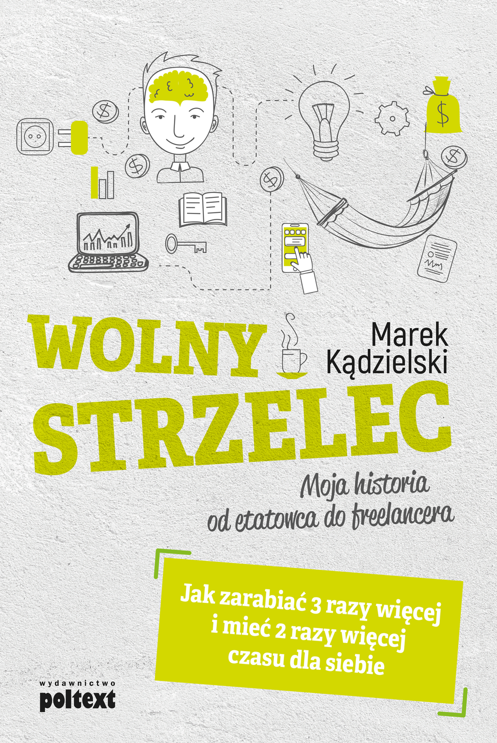 Etat czy własna działalność gospodarcza? Co robić, by odnieść sukces jako wolny strzelec? Na te i inne pytania musisz sobie odpowiedzieć, zanim zaczniesz własną działalność: • Jaka forma prowadzenia działalności? • Praca w domu czy w wynajętym biurze? Czy muszę mieć księgową? • Organizacja dnia pracy. Jak zwiększyć wydajność, kiedy jestem sam? • Komputer, laptop, komórka, nowoczesne oprogramowanie i jak je dobierać do swoich potrzeb? Bazy danych, kopie zapasowe – co mają zawierać? • Metody negocjowania wynagrodzenia. Od czego zależą stawki, jak określać wartość swojej pracy? • Ilu powinienem mieć klientów? Praca pośrednia czy bezpośrednia? • Z czego składa się zysk freelancera? Aktywne i pasywne elementy zysku i jak można na nie wpływać? • Jak zwiększać zysk przy wykonywaniu ciągle tego samego rodzaju pracy? • Jak mogę sprawić, żeby mi płacili szybciej za wykonaną pracę? *** Marek Kądzielski przekonuje, że „bycie na swoim” oznacza liczne korzyści: wyższe zarobki, więcej czasu wolnego, satysfakcję płynącą z kontroli swego losu. Druga strona tego wyboru to ogromna samodyscyplina, wyrobienie w sobie „mentalności biznesmena”, umiejętne zarządzanie sobą. W książce Wolny strzelec Kądzielski w barwny i ciekawy sposób przedstawia zakręty i rozdroża drogi wiodącej od etatowca do freelancera – drogi, którą sam przebył. Dokładnie omawia specyfikę sytuacji wolnego strzelca na polskim rynku biznesowym, podaje wiele praktycznych i niebanalnych rad i przykładów, a także wskazuje najczęściej popełniane błędy i zdradza, jak ich unikać.