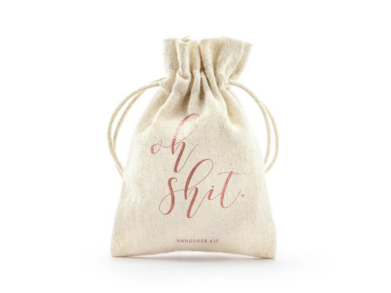 Ściągane woreczki wykonane z bawełny, z napisem Oh shit w kolorze różowego złota, wymiary ok. 10 x 15 cm.(1 op. / 10 szt.)
