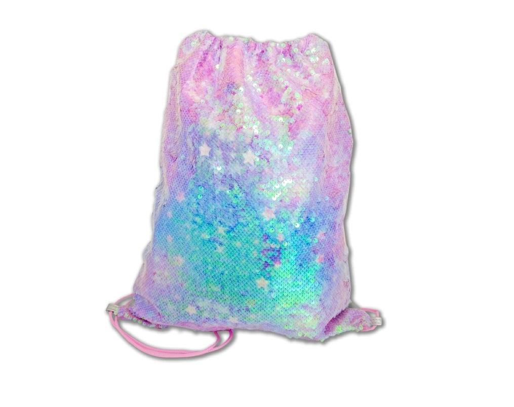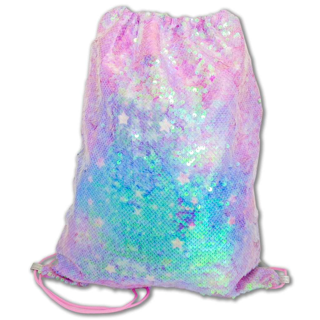 Cekinowo-różowy worek, mieni się wieloma odcieniami dzięki holograficznym cekinom.