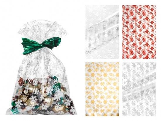 Worek celofanowy BN. Wyprodukowany z mocnego celofanu z nadrukiem. Świetny do pakowania drobnych prezentów. Można go ozdobić, przewiązując go wstążką. Kolor: transparentny Wzór: białe śnieżynki Wymiar: 250 x 400 mm Wymiar: 250mm x 400mm x 1mm (szer. x wys. x gł.)