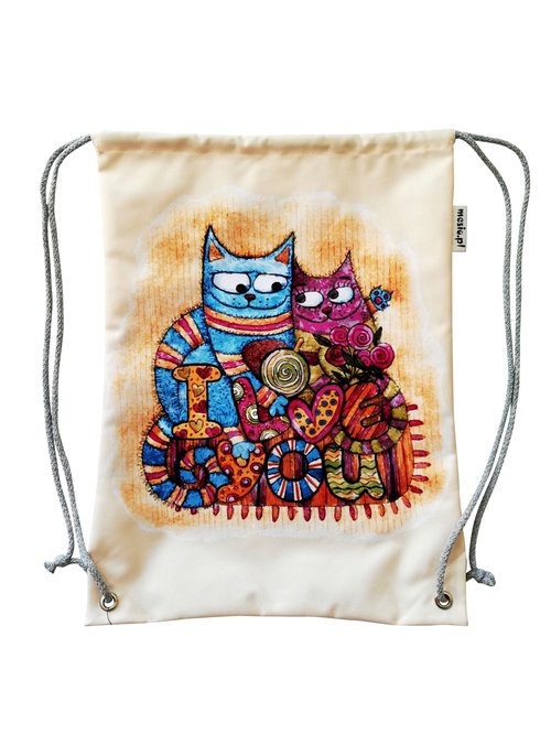 Worek-plecak wykonany z bardzo mocnego materiału o fakturze płótna. Można go prać w pralce. Worek ma ściągane szelki z grubego bawełnianego sznurka. Zadrukowany jednostronnie. Produkt polski.