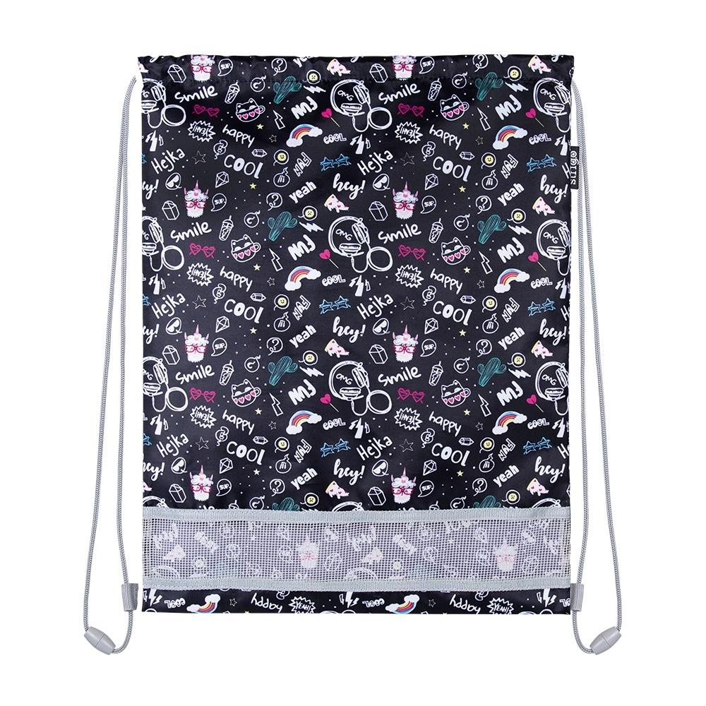 Limitowana kolekcja produktów szkolnych z serii Hejka tu Lenka! Niepowtarzalny design, w połączeniu z funkcjonalnością oraz wysokiej jakości wykonaniem, sprawia że jest to worek idealny dla każdego. Swoim wzorem łączy się z plecakiem i piórnikiem Happy Cool z serii Hejka tu Lenka.Worek wykonany z poliestru, regulowany sznurkami, posiadający w dolnej części siatkę wentylującą. Z pewnością nie przejdziesz obok niego obojętnie!
