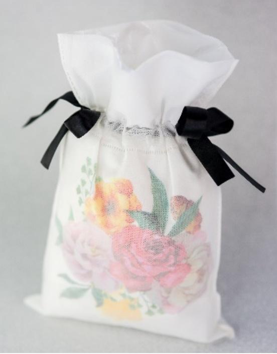 Worek na prezenty w kwiaty ,o wymiarach 20x30 cm, wykonany jest z tkaniny z foliowym wkładem.