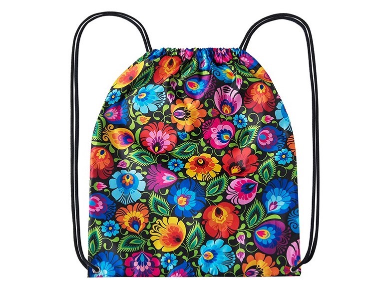 Sportowy folk worek jest świetnym połączeniem oryginalnego, ciekawego i wyróżniającego się wzoru. Łowicki plecak spodoba się nie tylko sympatykom folkloru polskiego, ale także tym, którzy lubią ferię barw.