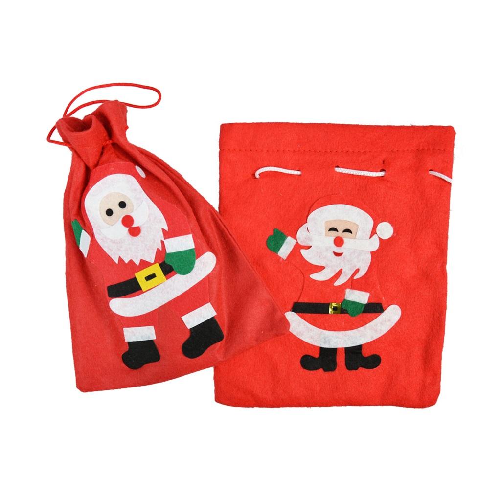 Worek dekoracyjny w tradycyjnie świątecznym kolorze czerwonym. Na przodzie produktu znajduje się aplikacja przedstawiająca Mikołaja. Produkt wyposażony jest w sznurek ściągający umożliwiający zawiązanie worka. Worek może służyć jako element dekoracyjny lub jako opakowanie prezentu. Wymiary worka to 26x20 cm.