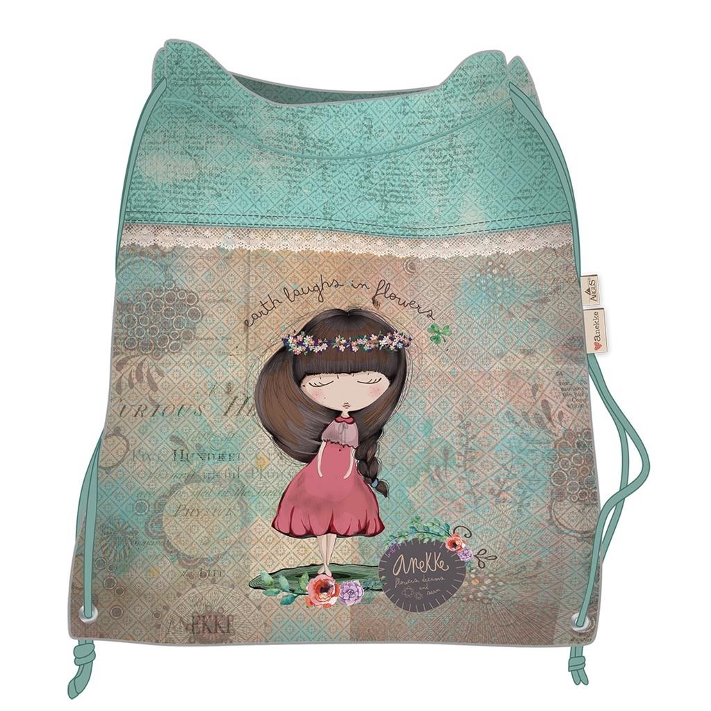 Wytrzymały worek na buty lub na kapcie idealny do szkoły lub przedszkola. Posiada obustronne sznurki dzięki czemu można go zarzucić na plecy i nosić jak plecak. Wymiary: 37 x 44 cm.