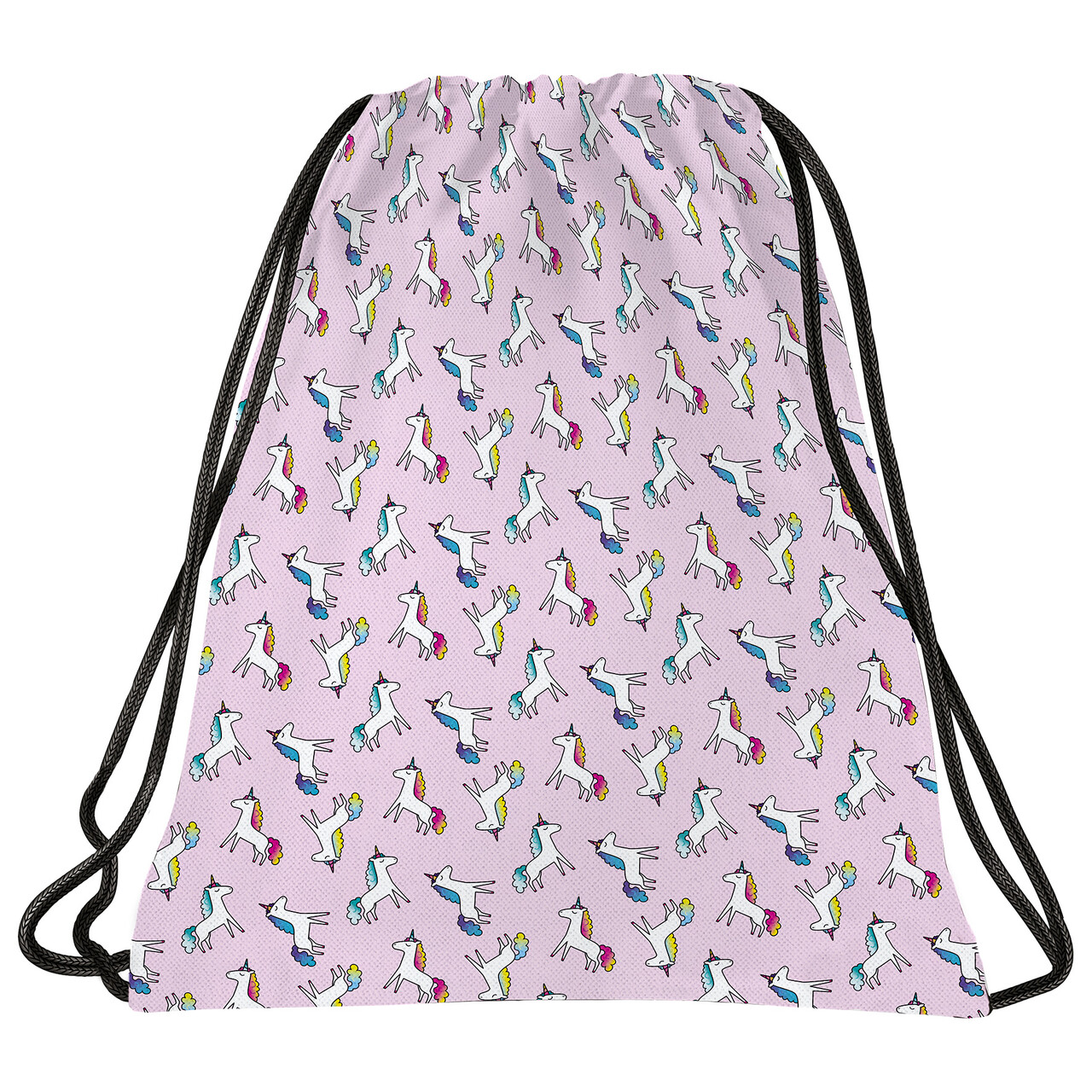 Worek unicorn pastele. Pudrowo różowe tło ozdabiają kolorowe jednorożce, które kochają wszyscy. Wnętrze: Worek na obuwie, z długim sznurkiem, który umożliwia korzystanie z worka jak z plecaka. Rozmiar 41 x 35 cm waga: 33g
