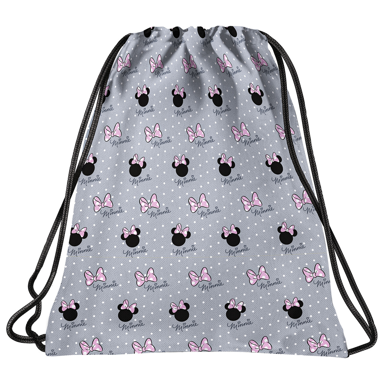 Ponadczasowy wzór - worek w kolorze szarym w myszki Minnie z nieodłączną różową kokardką.