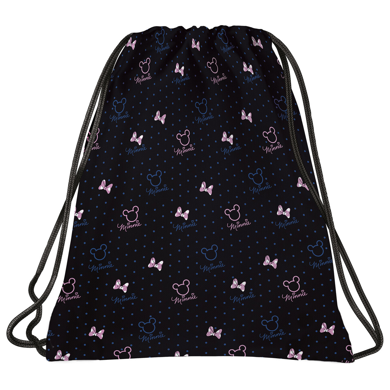 Ponadczasowy wzór - worek w kolorze czarnym w myszki Minnie z nieodłączną różową kokardką. Wnętrze: Worek na obuwie, z długim sznurkiem, który umożliwia korzystanie z worka jak z plecaka. Rozmiar 41 x 35 cm waga: 33g"