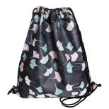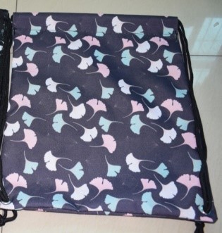 Worek szkolny na obuwie zmienne z możliwością założenia na plecy (wzór: błękitne i różowe liście miłorzębu japońskiego na grafitowym tle). Wymiar 35xh40cm.