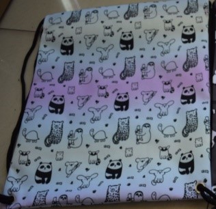 Worek szkolny na obuwie zmienne z możliwością założenia na plecy ( wzór: niewielkie szkice zwierząt na cieniowanym, pastelowym tle). Wymiar 35xh45cm.