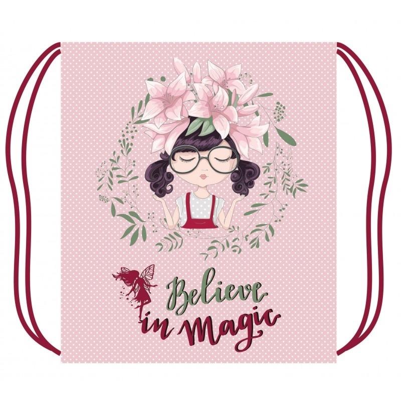Wytrzymały worek na buty lub na kapcie idealny do szkoły lub przedszkola. Posiada obustronne sznurki dzięki czemu można go zarzucić na plecy i nosić jak plecak. Wymiary: 36 x 43 cm