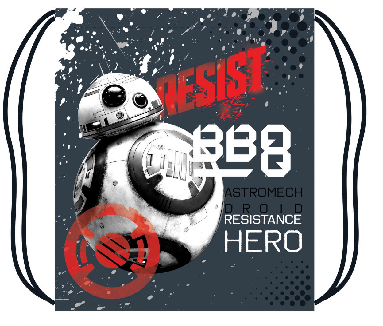 Wytrzymały worek na buty lub na kapcie idealny do szkoły lub przedszkola. Posiada obustronne sznurki dzięki czemu można go zarzucić na plecy i nosić jak plecak. Licencja Star Wars – Gwiezdne Wojny. Wymiary: 30 x 41 cm
