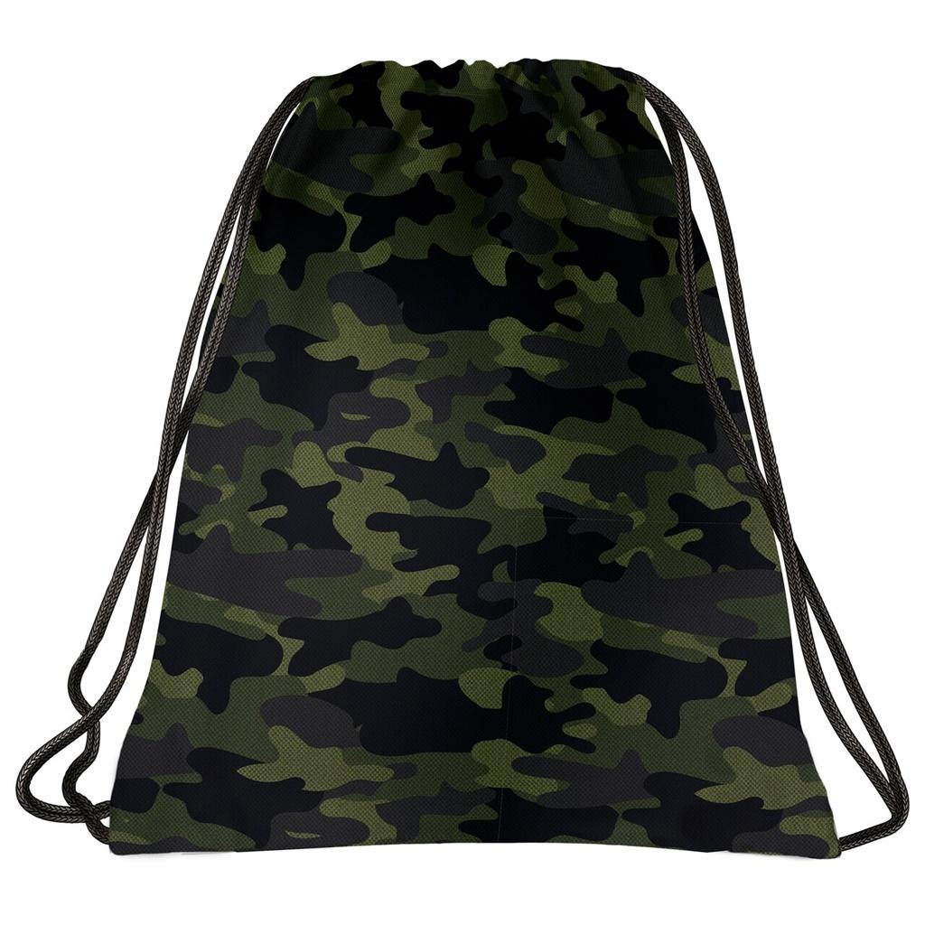 Worek na obuwie w odcieniach khaki. Ponadczasowy wzór moro jest tak uniwersalny jak czerń, pojawia się w zarówno w stylizacjach codziennych, jak również na eleganckich galach! Militarny motyw cieszy się sporą popularnością już od kilku sezonów! Postaw na kultowy print, pełen charakteru.