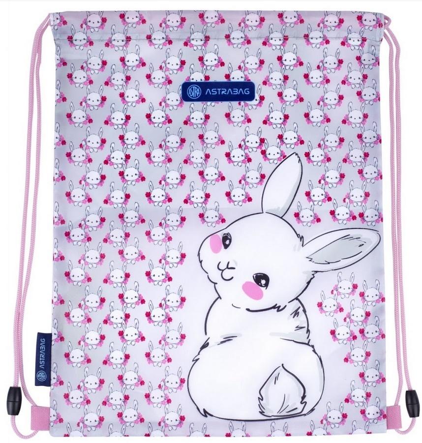 Worek na buty Astrabag z motywem graficznym przedstawiającym rysunkowego króliczka. Został zaprojektowany z myślą o najmłodszych fankach tych uroczych zwierzątek. Różowe akcenty kontrastujące z praktycznym i modnym odcieniem szarości sprawdzą się w każdej sytuacji. Worek posiada podwójne boczne sznurki ze złączką bezpieczeństwa, które umożliwiają noszenie go w rękach, na ramieniu czy na plecach. Dodatkowo na odwrocie worka na obuwie Astrabag znajduje się plakietka do wypisania danych personalnych ucznia.