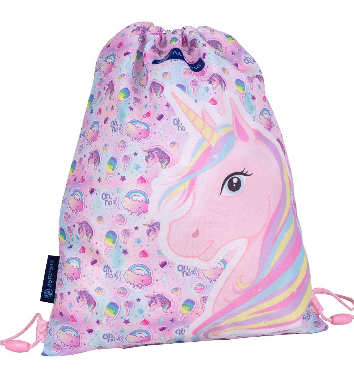 Poczuj się jak bohaterka swoich ulubionych kreskówek i stwórz własną historię z bajkowym workiem na buty Astrabag. Piękny pudrowy róż oraz pastelowy motyw jednorożców z całą pewnością skradnie serce niejednej dziewczynki zakochanej w tych baśniowych i mitycznych stworzeniach. Worek posiada podwójne boczne sznurki ze złączką bezpieczeństwa, które umożliwiają noszenie go w rękach, na ramieniu czy na plecach. Dodatkowo na odwrocie worka na obuwie Astrabag znajduje się plakietka do wypisania danych personalnych ucznia.
