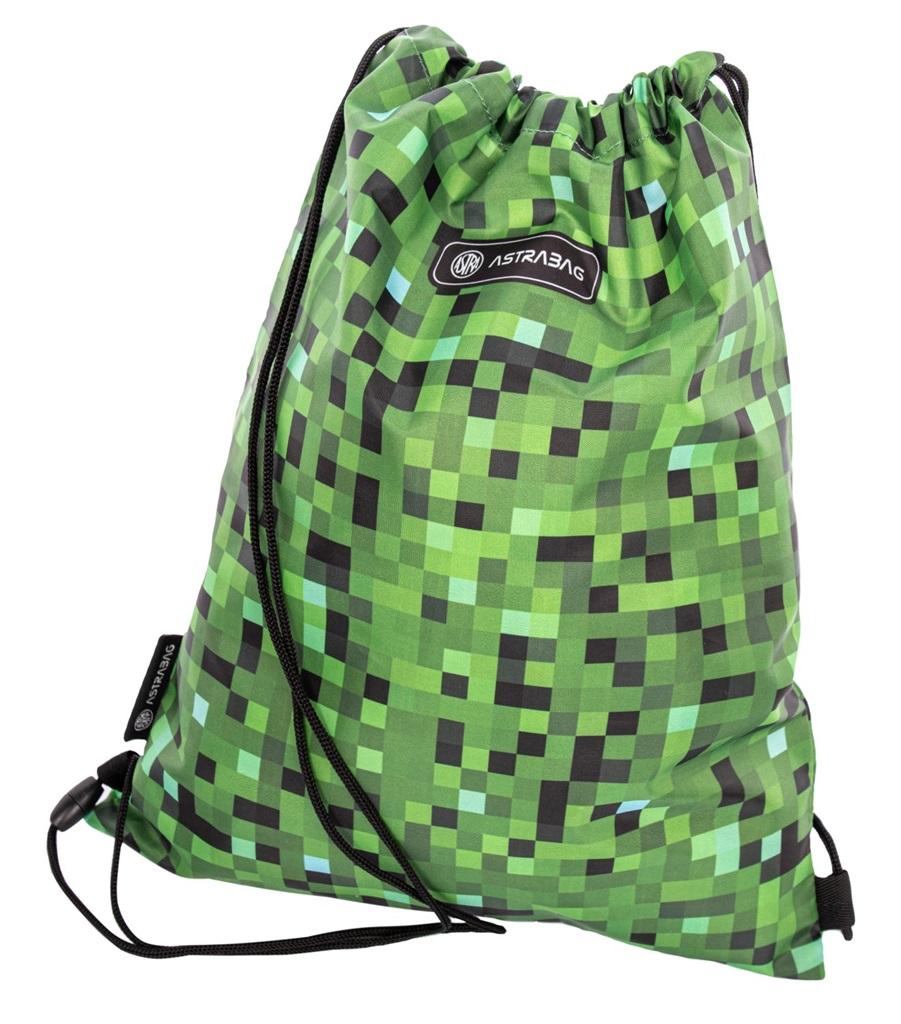 Worek na obuwie ASTRABAG PIXEL ONE, AD1. Ma podwójne boczne sznurki ze złączką bezpieczeństwa, dzięki którym można go trzymać w rękach, na ramieniu czy na plecach. Na odwrocie worka jest plakietka na dane personalne ucznia.
