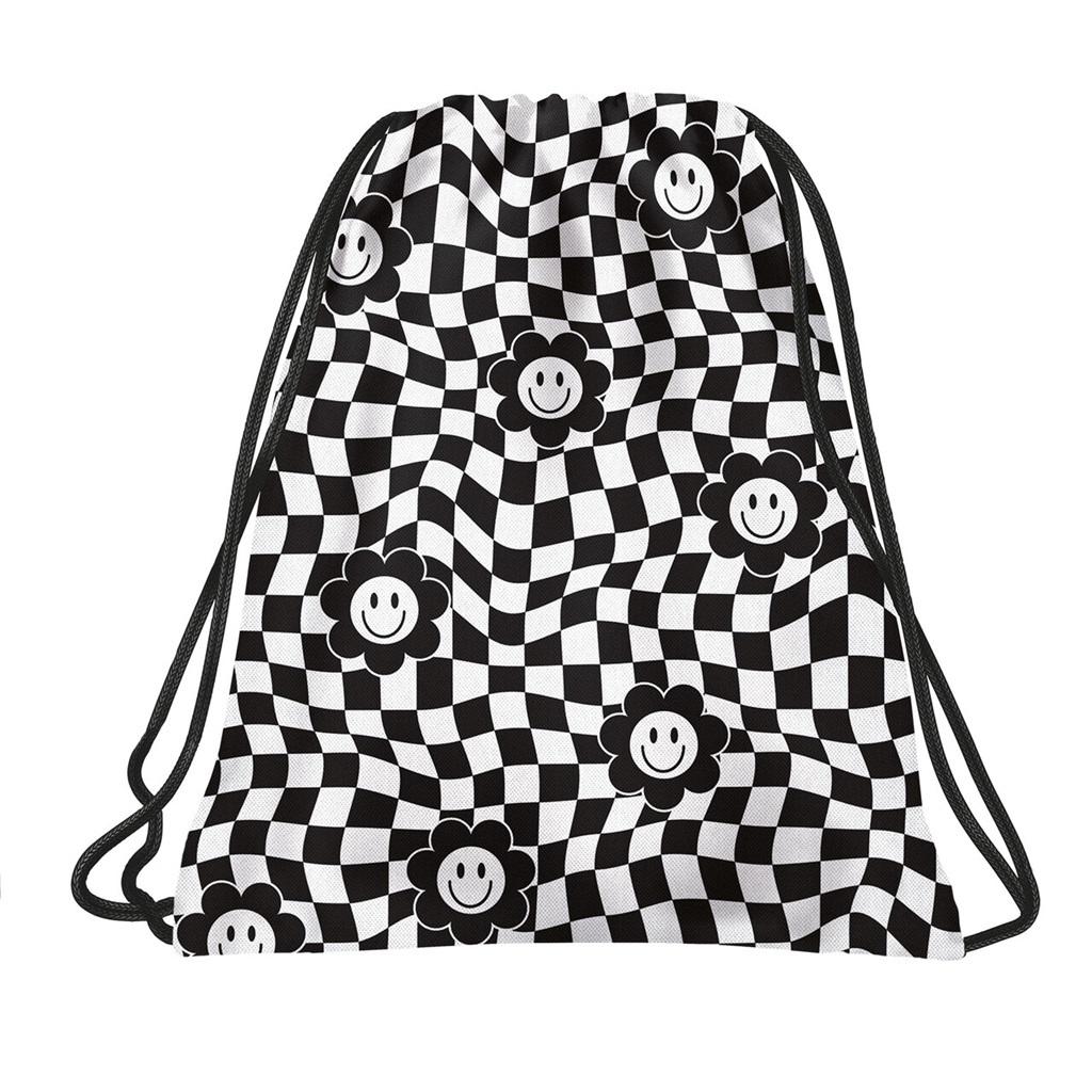 Ponadczasowa kratka w nowej, asymetrycznej odsłonie w duecie z najmodniejszym w tym sezonie wzorem uśmiechniętego kwiatka emoji. Ten worek na WF to świeże spojrzenie na styl Y2K. Klasyczna czerń z bielą dopełnią każdą szkolną stylizacje, a modny, nietuzinkowy wzór przyciągnie uwagę na szkolnym korytarzu. Nazwa kolekcji: Happy Face Worek BackUP: - Sprawdzi się idealnie na WF - posiada długie i solidne sznurki - wykonany jest z wodoodpornej tkaniny, którą można łatwo wyczyścić - może być używany jak plecak - waga: 33 g