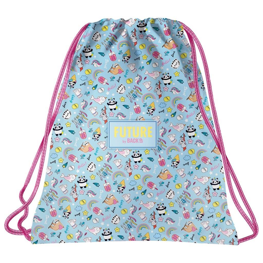 Worek na obuwie, idealny na szkolne treningi i na basen. Dwustronny, posiada podwójne boczne sznurki, które umożliwiają noszenie worka w rękach, na ramieniu czy na plecach. Na odwrocie znajduje się miejsce do wpisania danych osobowych dziecka.