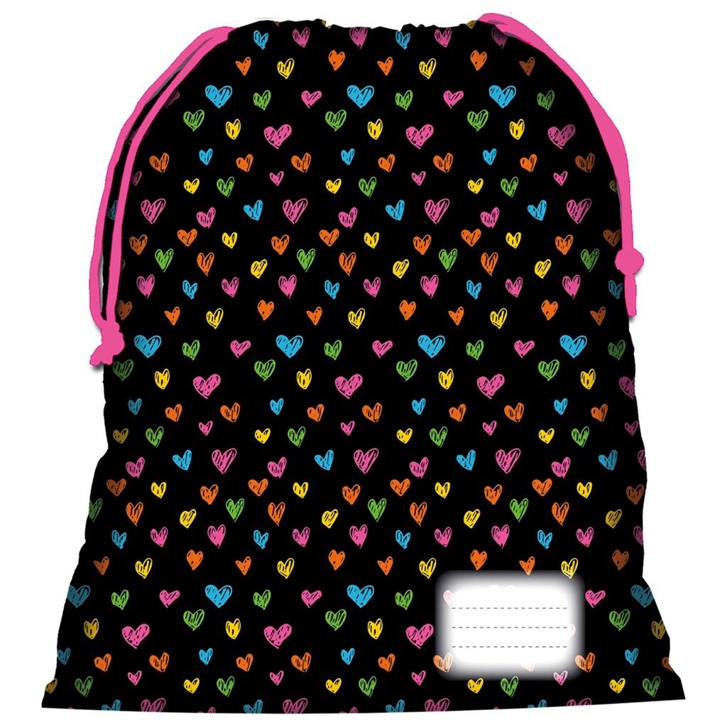 Worek na obuwie, idealny na szkolne treningi i na basen. Dwustronny, posiada podwójne boczne sznurki, które umożliwiają noszenie worka w rękach, na ramieniu czy na plecach. Na odwrocie znajduje się miejsce do wpisania danych osobowych dziecka. Wymiary: 41x35 cm