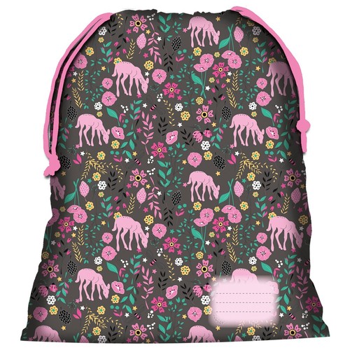 Worek na obuwie, idealny na szkolne treningi i na basen. Dwustronny, posiada podwójne boczne sznurki, które umożliwiają noszenie worka w rękach, na ramieniu czy na plecach. Na odwrocie znajduje się miejsce do wpisania danych osobowych dziecka. Wymiary: 41x35 cm
