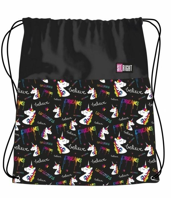 Funkcjonalność: worek na obuwie lub strój gimnastyczny posiada podwójne boczne sznurki, które umożliwiają noszenie worka w rękach, na ramieniu oraz na plecach Wymiary: 34 cm x 43 cm