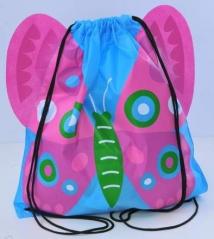 Worek z nadrukiem motyla doskonały na zmianę obuwia (kapcie, buty, obuwie na WF) lub strój gimnastyczny (na gimnastykę lub na basen). Worek zamykany na sznurek. Wykonany z nieprzemakalnego, łatwego w utrzymaniu czystości materiału.