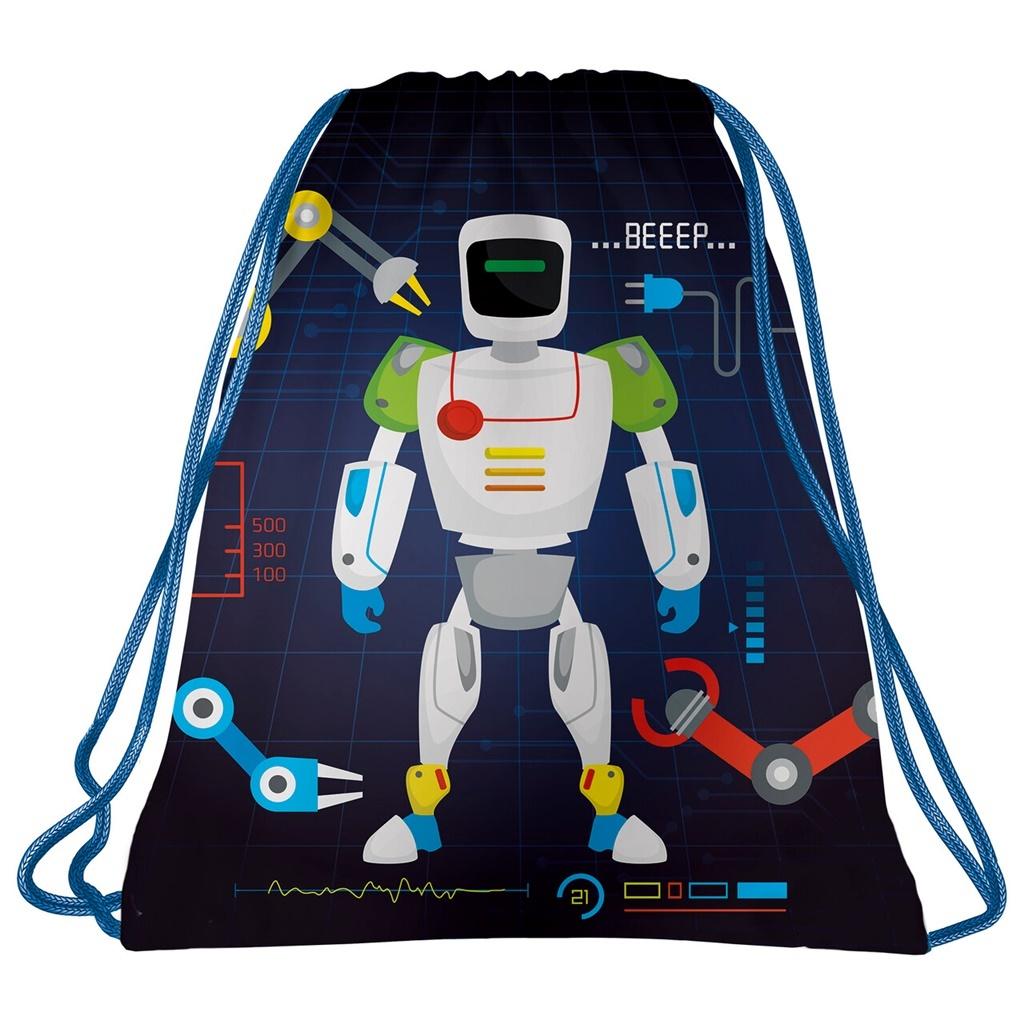 Worek na obuwie, idealny na szkolne treningi i na basen. Dwustronny, posiada podwójne boczne sznurki, które umożliwiają noszenie worka w rękach, na ramieniu czy na plecach. Na odwrocie znajduje się miejsce do wpisania danych osobowych dziecka.