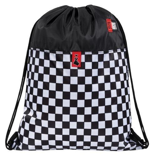 posiada podwójne boczne sznurki, które umożliwiają noszenie worka w rękach, na ramieniu oraz na plecach